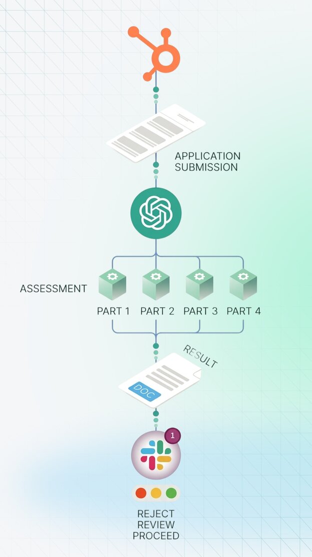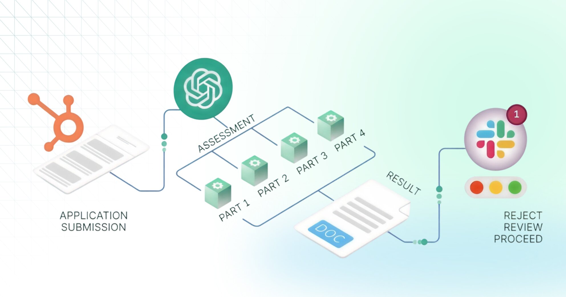 We connected the pipeline using Zapier, linking the fund's existing HubSpot submission form to the AI evaluation engine, Google Docs output, and Slack notifications. No new infrastructure, no complex deployment. This kept the project fast and meant the system could go live against real pitches immediately - which was critical for validating the AI's judgment against the team's own assessments.